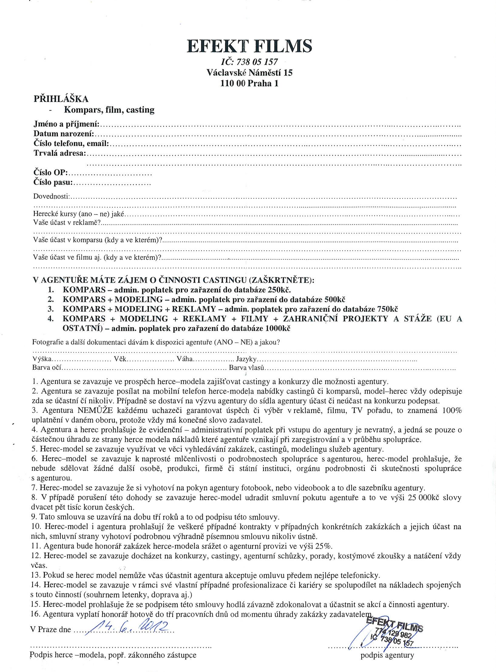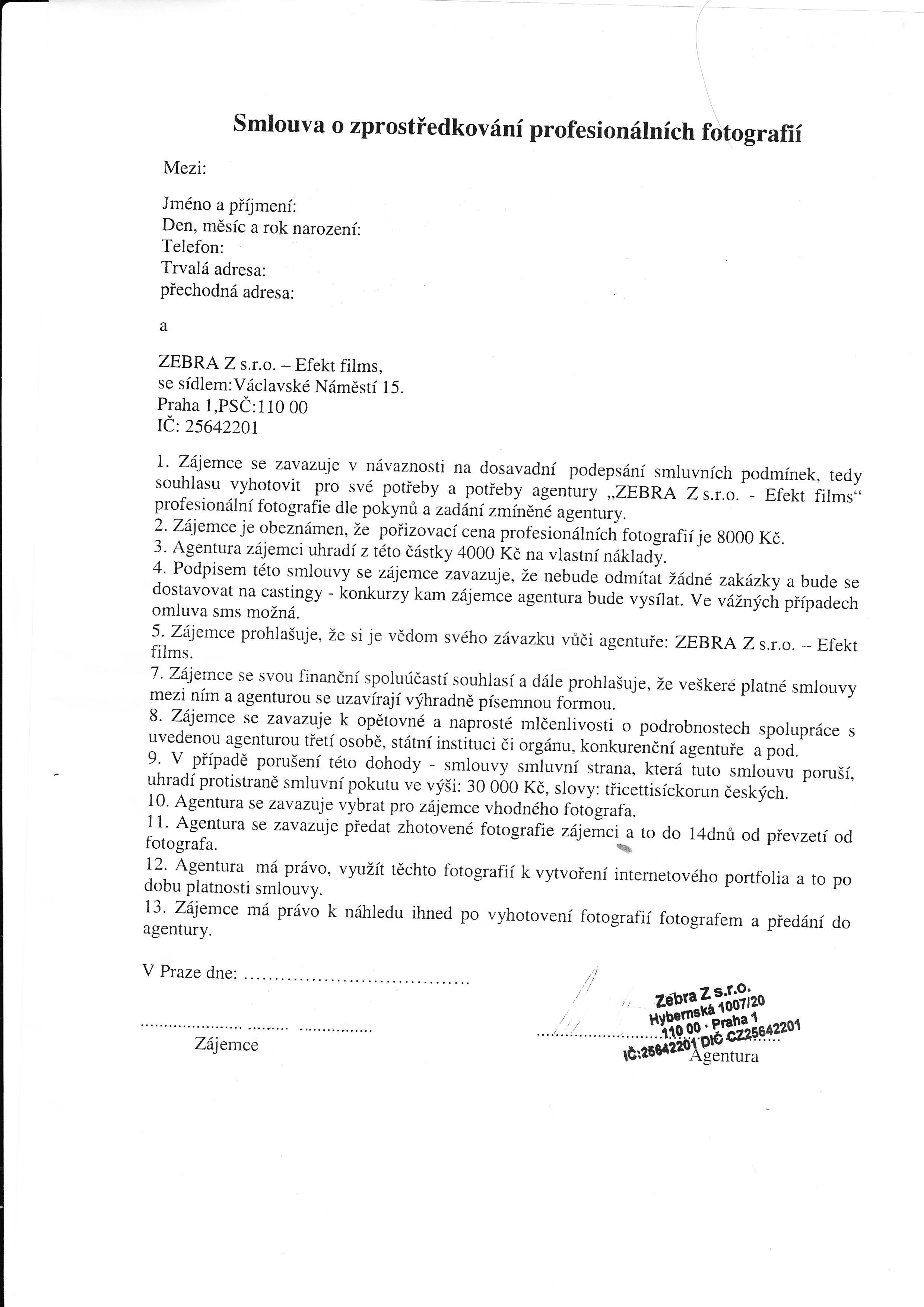 smlouva s agenturou